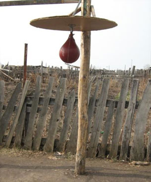 Манекен, который очень похож на «деревянного человека», только сверху пружинистая подушка. Когда вы используете удар на «деревянном человеке», вы развиваете силу и технику, на этом манекене вы развиваете скорость и технику.