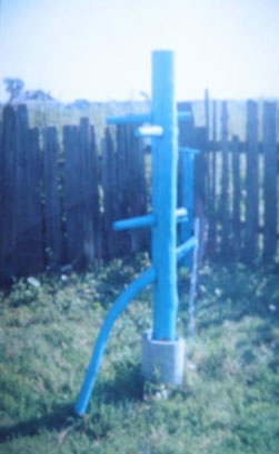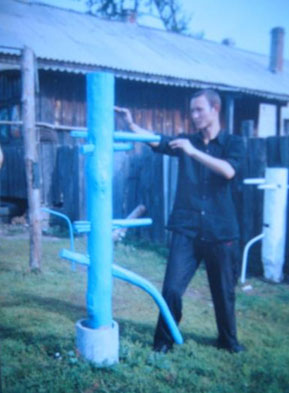 Деревянного человека я соорудил вместе со своим другом Айдаром, после того, как у меня появилась книга «Дао кунг-фу», которую написал Брюс Ли, под редакцией Джона Литлла. Именно оттуда мы взяли это и решили сделать деревянную куклу.