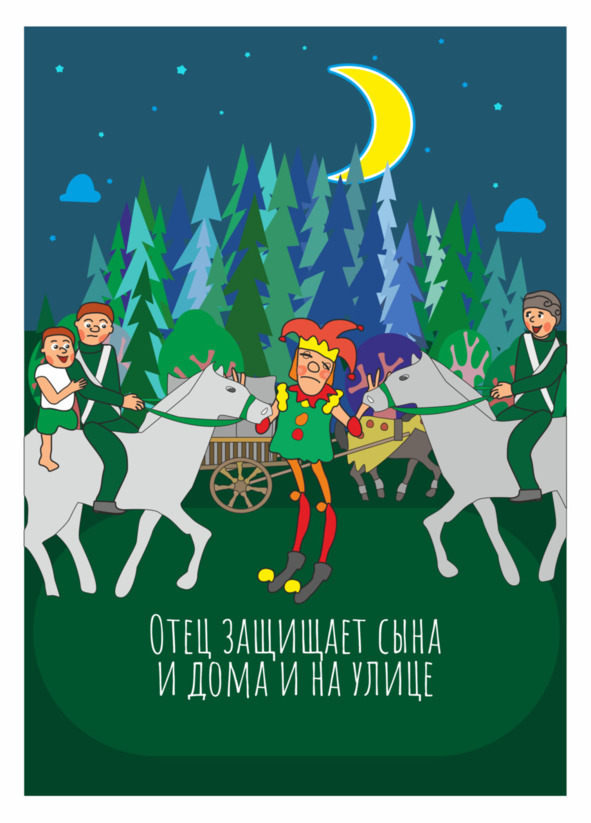 – Ты отец мальчика? Думаю, ты хочешь лучшего для своего сына. Отдай его в нашу семью скоморохов, и он будет всегда веселиться, – сказал скоморох отцу.