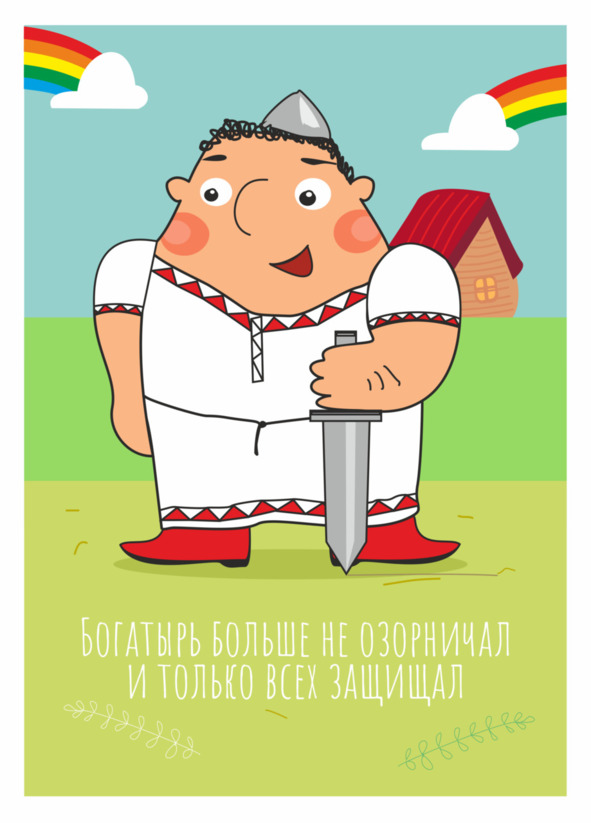 Понял богатырь, что все его проделки возвращаются ему сторицей. И раз уж началось это после встречи с торговцем, у него и следует просить избавления. Искал он торговца, искал. Всю деревню исходил богатырь вдоль и поперёк, но не встретил его. Так и живёт он теперь – больше не озорничает, каждого уважает и никого не обижает. Но и в обиду никого не даёт.