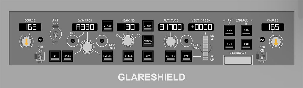 Mode Control Panel (MCP) [мОуд контрОл пЭнл] – основной интерфейс для управления автоматическим полетом. На ней пилот выставляет эти два компонента цели.