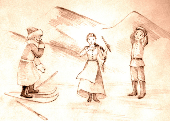 Старец поблагодарил Ивана и они принялись трапезничать. Иван продолжил рассказ про свою родину, про то, что как раз сейчас приближается весёлый Новый год как все, от мала до велика, радуются празднику, как готовятся к нему, как хозяйки пекут пироги, а детишки катаются с высоких горок на санках…