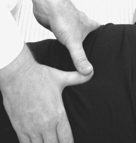 Совмещенные большие пальцы (вернее, подушечки больших пальцев) обладают удвоенной силой и используются при взаимомассаже и самомассаже (фото 2). Если массажист правша, левый палец помещается сверху и дополняет усилие правого.