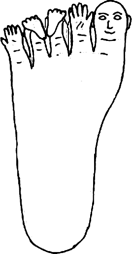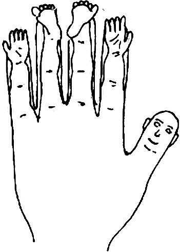 В основе корейской рефлексотерапии лежит Закон подобия, проявляющийся в нашем телосложении. Посмотрите внимательно на наши ладони! Строение кистей рук подобно сложению скелета человека. Вот таких человечков можно представить на наших ладонях рис. 1, а.