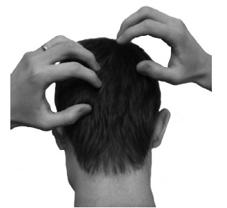 1. Раскройте ладони и округлите их так, будто в каждой руке держите небольшой апельсин (фото 3). Пальчики должны стать достаточно жесткими, а запястья надо хорошо расслабить (такие требования предъявляются к пианистам). Начинаем производить дробные частые удары жесткими подушечками пальцев по всей затылочной поверхности головы – от макушки до впадины на шее (барабаним не меньше, чем 3 минуты). В голове должно быть ощущение множества барабанных палочек, отбивающих непрерывную дробь на всей волосистой поверхности головы.