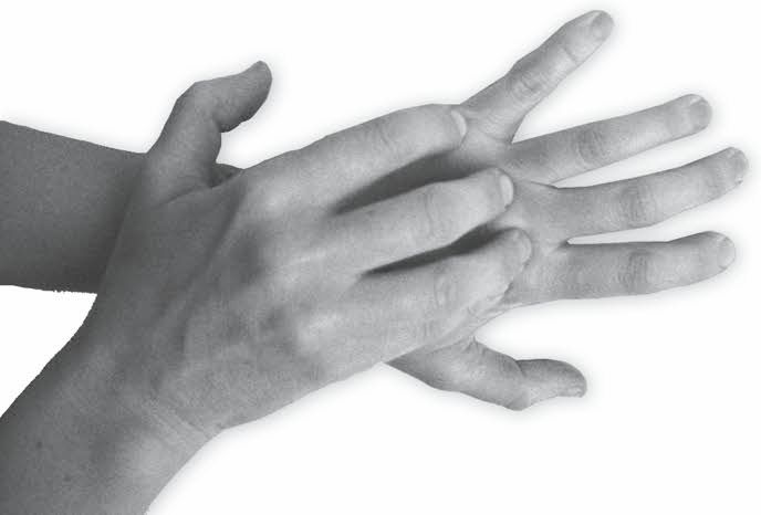 1. Представьте себе, что намыливаете руки обычными круговыми движениями под струей теплой воды. Если выполняете массаж в комфортных домашних условиях, лучше начать массаж с реального мытья рук (не менее 20 секунд) и нанесения массажного крема.