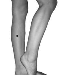 ● точка 11 является парной и располагается на передневерхней стороне ноги, у начала большеберцовой и малоберцовой костей (рис. 12); воздействие на нее лечит заболевания щитовидной железы, особенно базедову болезнь, кроме того она регулирует лимфообращение в брюшной полости и оказывает положительное воздействие на пожилых людей;