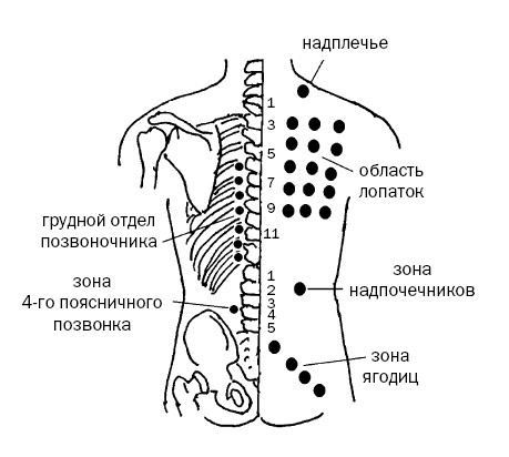 4. Прощупайте пальцами зоны надпочечников, лопаток и надплечье (рис. 9, б). Мы должны выполнить важную задачу – обнаружить жесткие точки в указанных зонах, с тем, чтобы размягчить их простукиванием, пощипыванием, надавливанием. Простукиваем и пощипываем зону лопаток и надплечье. Зону надпочечников плотно надавливаем.