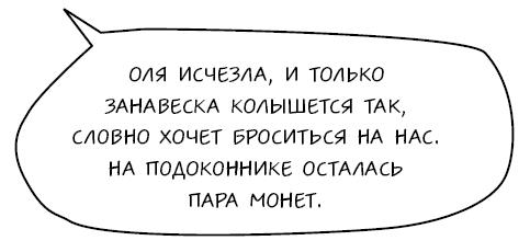 Оля исчезла, и только занавеска колышется так, словно хочет броситься на нас. На подоконнике осталась пара монет.
