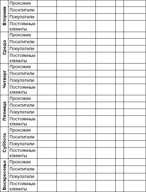 Кроме того, тетрадь учета покупателей, заполняемая продавцом, может помочь выяснить, сколько людей возвращается к вам снова. Это позволяют сделать однажды выданные покупателю скидочные купоны или карточки, с которыми он пришел в этот раз.