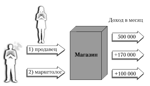 Например, изначальный доход магазина 500 000 руб. в месяц.