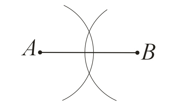 Из точек А и В проводим дуги радиусом большим половины длины отрезка: