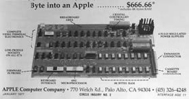 Но вернемся к основной теме. Итак, процессоры Intel и Motorola были в то время практически недоступны из-за высокой цены, и в один прекрасный день перед Возняком открылась великолепная возможность – ушедшие из Motorola проектировщики разработали процессор, который стоил всего 20 долларов. Возняк, создал для него BASIC и простой компьютер. Увидев разработку, Джобс предложил Возняку сделать персональный компьютер, и они начали работать над его созданием.
