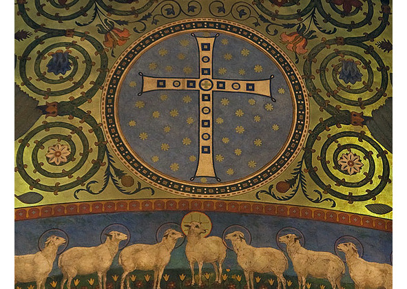 Фреска Виктора Васнецова, XIX в. Крест в круге. Агнец Христос.