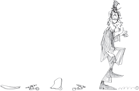 ‘I know what’d be funty,’ said Billy William, scratching his chin with a long unwashed finger. (He always pronounced the word ‘funny’ in this way. Pronouncing words strangely was one of his hobbies, like collecting phlegm or trying to see up ladies’ skirts.) ‘We could break a skateboard,’ he suggested.