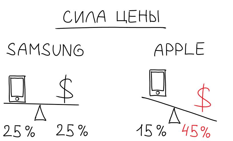 Чтобы лучше проиллюстрировать понятие силы цены, давайте посмотрим на пример компаний «Apple» и «Samsung» – лидеров рынка мобильных телефонов. Кто же из них сильнее?