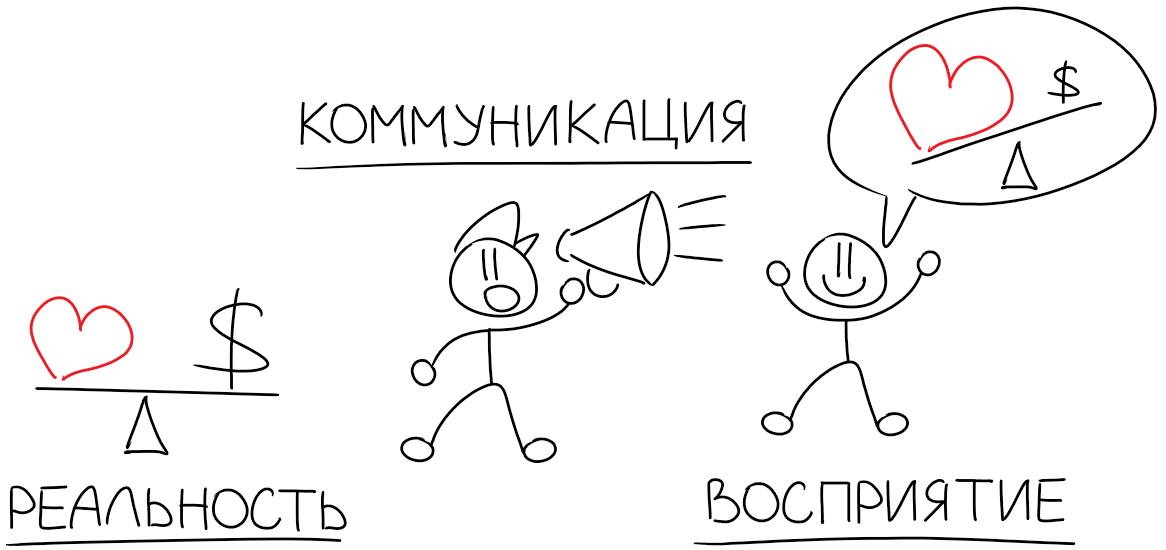 Важно понимать, что ценность, которая лежит на весах, является чаще всего не реальной, а воспринимаемой покупателем. В чем разница?