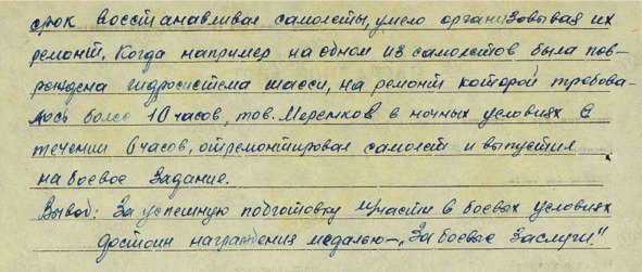 За три с лишним месяца непрерывных боевых действий днем и ночью во взаимодействии с войсками 24-й и 49-й армий полк уничтожил на аэродромах и в воздушных боях 76 самолетов, 86 танков, множество автомашин, артиллерийских орудий, железнодорожных вагонов, солдат и офицеров противника. Полк понес тяжелые потери. От истребителей и зенитного огня противника было потеряно 23 самолета и 55 человек летного состава. (allaces.ru) Но даже в этот тяжелейший период войны командиры не забывали награждать техсостав. Правда, в наградном листе не упоминали лихую атаку бензовозов, опасались недоверия высших штабников. Медаль «За боевые заслуги» Николай получил за тяжёлый труд по ремонту самолётов. Собрав весь летный состав, командир полка рассказал о положении на фронте и боевых задачах, с горечью сообщил, что 5 октября в Знаменке немецкие танки напали на штабы ВВС 24-й армии и Резервного фронта, где были уничтожены и пропали пятьдесят представлений командования 57-го бомбардировочного полка на награждение личного состава орденами и медалями.