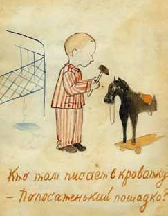 Наставление сыну. Шарж И. Б. Воробьевой-Урновой, 1940 г.