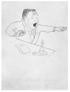 Дед Вася в 1930-е годы – обличает соседей, таскающих у нас дрова. Шарж набросан моей матерью.