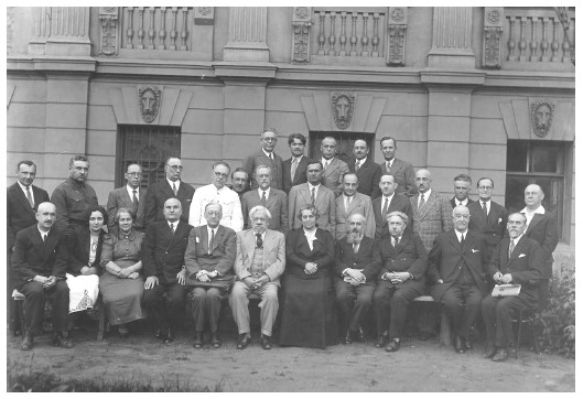 Состав Московского Дома ученых, 1931. В первом ряду, в центре – инициатор создания и председатель этого академического культурно-просветительского учреждения Мария Федоровна Андреева, рядом с ней академик Чаплыгин. Б. Н. Воробьев во втором ряду (на нем белый китель).