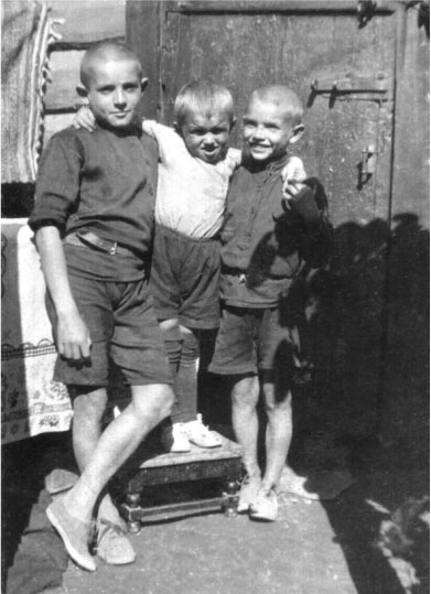 А в этот раз у тёти Татьяны, маминой сестры, оказалась фотографическая камера, которую она попросила на день у кого-то из знакомых в своей портняжной мастерской. Она выстроила Мишу и его братиков у входа в дом, посмотрела со стороны, наклоняя голову то вправо, то влево. Что-то её не устроило, и она сбегала в дом за низенькой банкеткой, на которую водрузила трёхлетнего Вову. Так лучше! Потом прицелилась, подвигала у камеры «гармошку», сказала: «Внимание!» И тут же: «Готово, молодцы!»