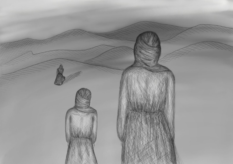 Шаг за шагом три фигуры в тёмных многослойных одеждах продвигались по нескончаемой череде песчаных дюн. С надеждой увидеть с высоты заветные хижины Факра начинали они свой подъём. Но каждый раз их взгляд упирался в новые песчаные холмы, и путникам ничего не оставалось, кроме как медленно спускаться по зыбкому склону, всё больше погружаясь в отчаяние.
