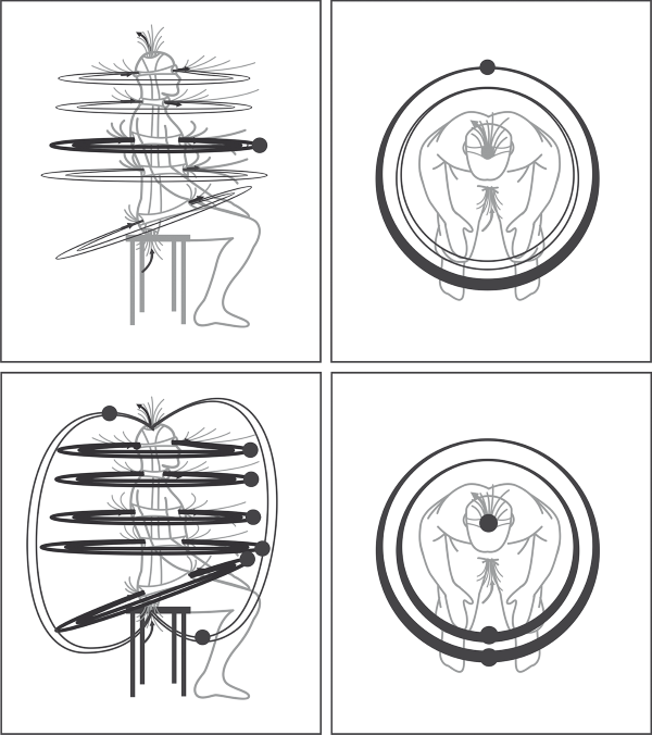 Упражнение с цветовыми восьмерками схоже по принципу работы с тем, что вы делали с цветовыми окружностями. Но при этом, выделив шарик из чакры, вы начинаете вращать его через чакровую область так, что он по схеме вращения напоминает цифру «8», если посмотреть на конструкцию сверху.