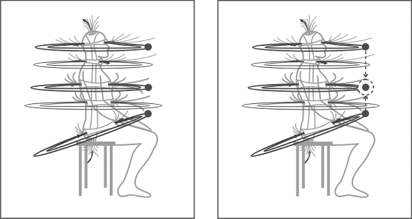 На следующем этапе вам необходимо вращать две окружности (цвета по выбору). И так далее наращивать свои возможности, пока вы не будете вращать все семь окружностей (которые в конце упражнения нужно поглотить).