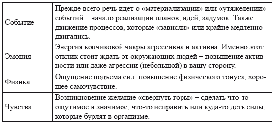 Копчиковая чакра связана с сугубо материальными процессами – все отклики, связанные с этой чакрой, «тяжелые» и осязаемые.