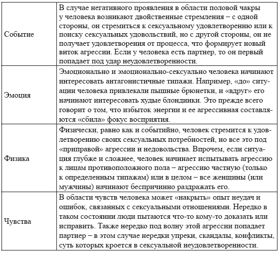 – потому что активность той или иной чакры максимальна для данного индивидуума, и избыток энергии выражается не только в гиперреактивности, но и в агрессивности – попытке защитить себя и свою структуру от влияний;
