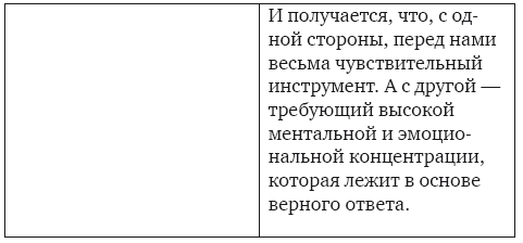Что в итоге? – А в итоге мы получаем информационный механизм, который просто и понятно рассказывает нам о том, что мы ощущаем в контексте того или иного вопроса или ситуации.