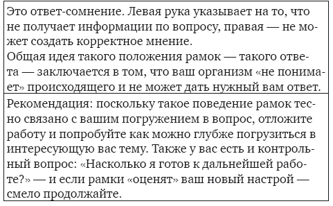 Руки при работе с рамкамиЕсли вы считаете, что рамки, которые вы держите в левой и правой руках, дублируют друг друга, то вы недалеки от истины. И тем не менее дублирование работы рамок, равно как их однозначные или противоречивые реакции, говорит о многом.
