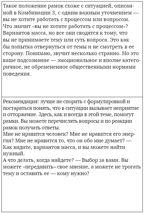 Шкала «-» – это демонстрация неприятия поступающей информации или своего рода ответ «НЕТ» в шкале ответов рамки. Причем чем больше этот уровень приближается к цифре «-3», тем ярче и сильнее ответ «НЕТ».