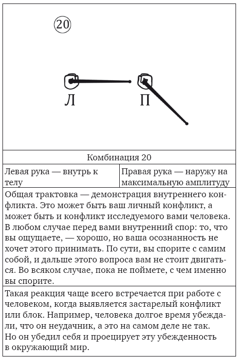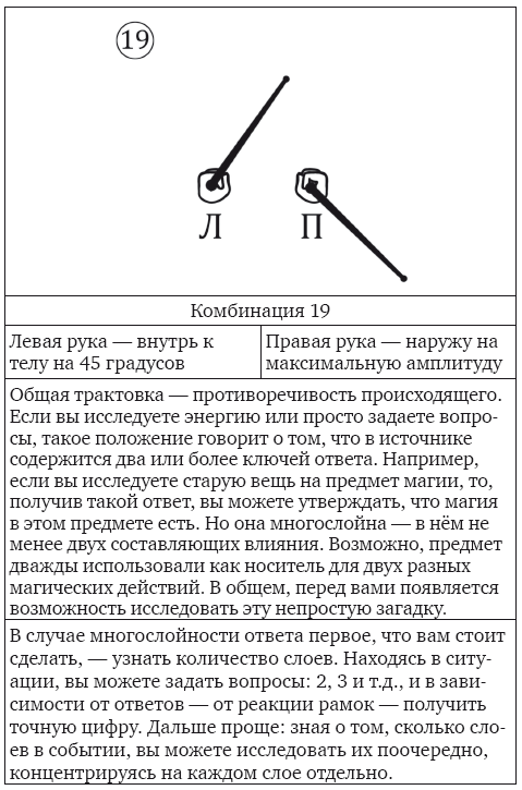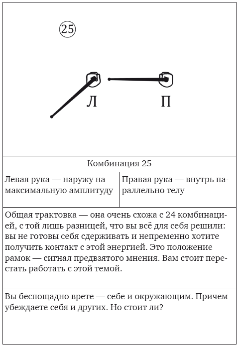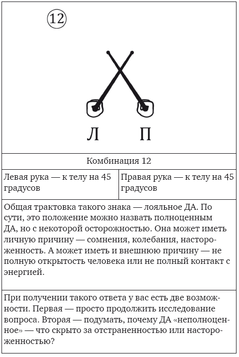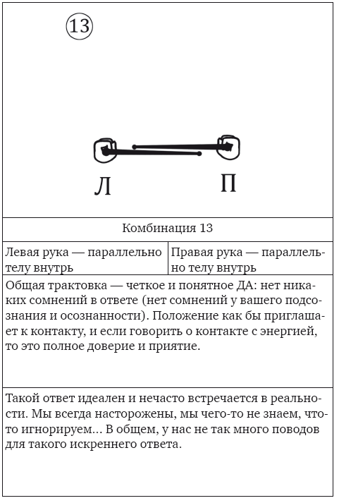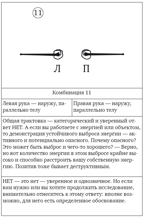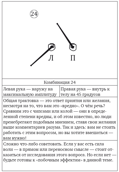 Перед вами основные, «стартовые» комбинации. Да, есть промежуточные, но все они так или иначе сводятся к описанным выше. Постарайтесь их исследовать и запомнить. Запомнить внутренне, в зависимости от вашего состояния и мироощущения, – а память и осознанность дополнят картину. Мы же продолжим работу, закрепив полученные знания с помощью тренировок и различных упражнений.