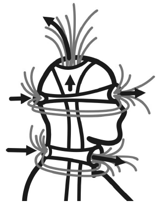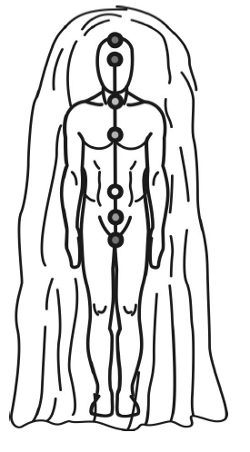 На рисунках вы видите, что чакра представлена в виде воронки. Но это вид спереди – сзади она также является воронкой, но не отдающей, а поглощающей энергию[1]. Снаружи мы реализуем то, что у нас внутри – свои стремления, желания, эмоции, формируем поступки. Сзади мы «поглощаем» то, что прошло через взаимодействие с окружающим миром – это наша энергия + энергия окружающего мира.