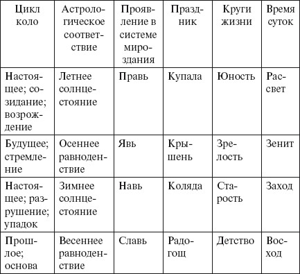 Почему именно таким образом наши предки решили поделить мировой круг жизни, вы сможете понять, прибегнув к несложному сопоставлению фактов, приведенных в таблице, с опытом собственной жизни.