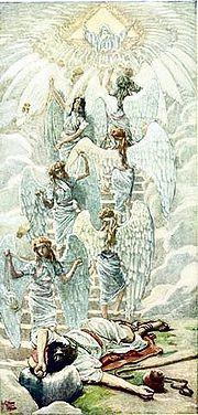 «И увидел во сне: вот, лестница стоит на земле, а верх ее касается неба; и вот, Ангелы Божии восходят и нисходят по ней. И вот, Господь стоит на ней и говорит: Я Господь, Бог Авраама, отца твоего, и Бог Исаака. Землю, на которой ты лежишь, Я дам тебе и потомству твоему; и будет потомство твое, как песок земной; и распространишься к морю и к востоку, и к северу и к полудню; и благословятся в тебе и в семени твоем все племена земные; и вот Я с тобою, и сохраню тебя везде, куда ты ни пойдешь; и возвращу тебя в сию землю, ибо Я не оставлю тебя, доколе не исполню того, что Я сказал тебе. Иаков пробудился от сна своего и сказал: истинно Господь присутствует на месте сем; а я не знал!» (Бытие 28.12–16)