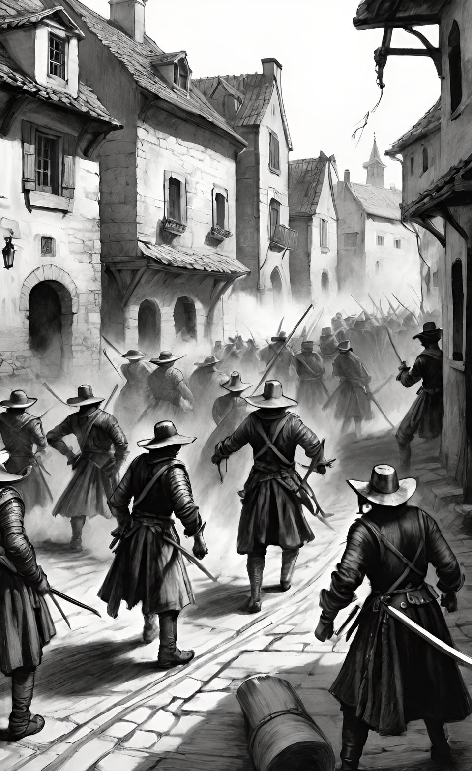Да, гвардия была отнюдь не многочисленна: мушкетёры, несколько ободранных рыцарей, пара выживших драгун из тех, что постарше, трое наёмников. Армия превратилась в ватагу, так что финальная схватка не предвещала особых перспектив.