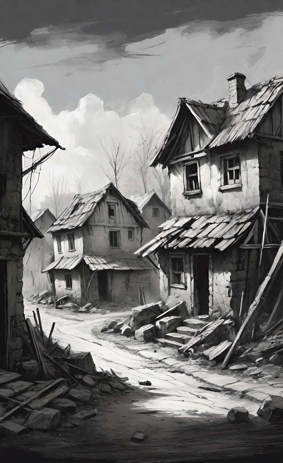 Деревня была сожжена, дотла, до самого основания. Несколько обугленных стенок и полуразвалившийся амбар: вот всё, что осталось от некогда скучной, но далеко небедной и почти процветающей деревеньки. Теперь всё имущество и утварь местных жителей покоились в толстом слоем золы на выжженной земле, а сами жители….