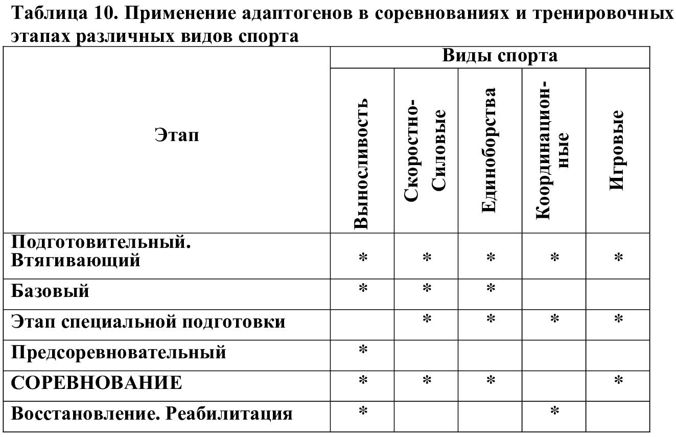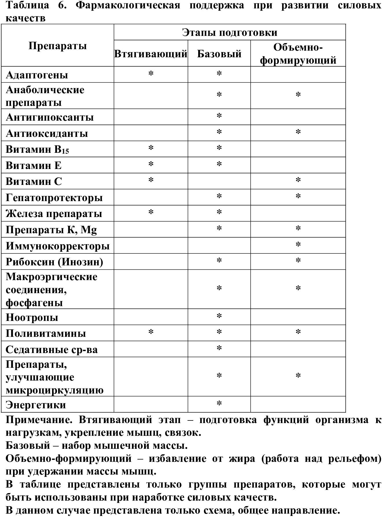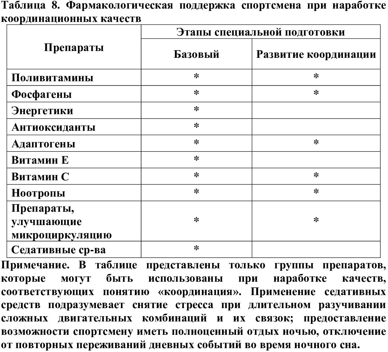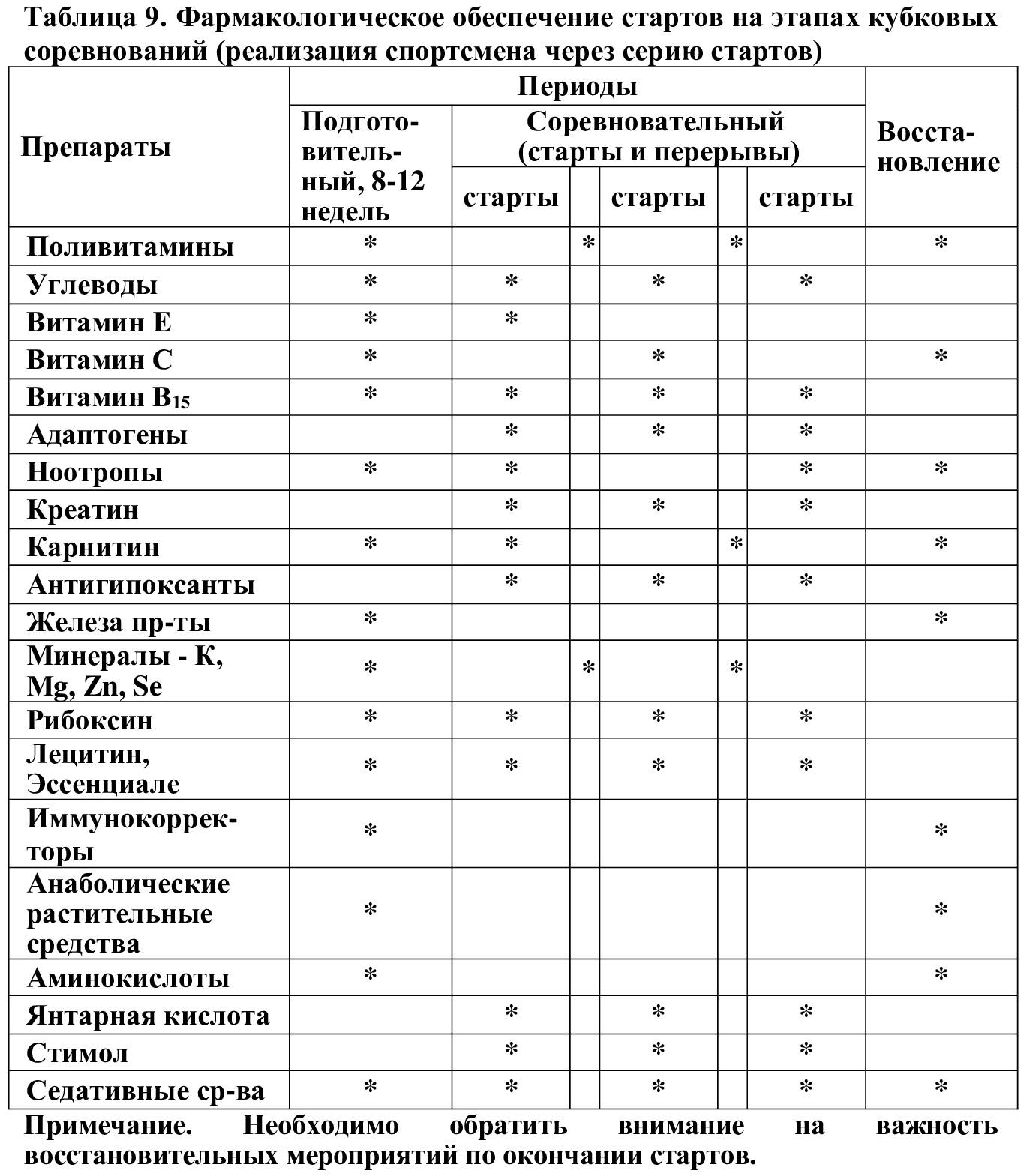 Вариантом фармакологического обеспечения, приведенным в таблице №9, могут воспользоваться и спортсмены игровых видов спорта.