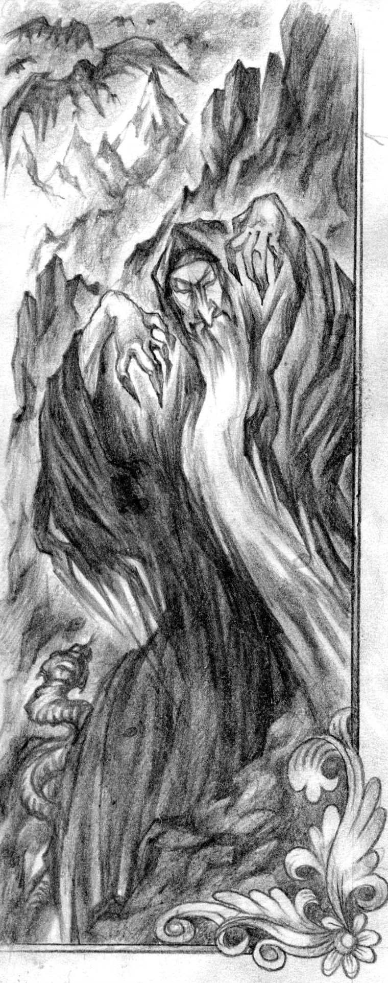 Внезапно нарастающий свист крыльев, приближающегося сзади зверя, прекратился. Гром, с опаской, обернулся. Грифон, опустившись на землю, смотрел со злобным взглядом куда-то на скалы, поверх его головы. Проследив взгляд чудовища, юноша увидел на скалистом выступе небольшого человечка, с бородою до колен.