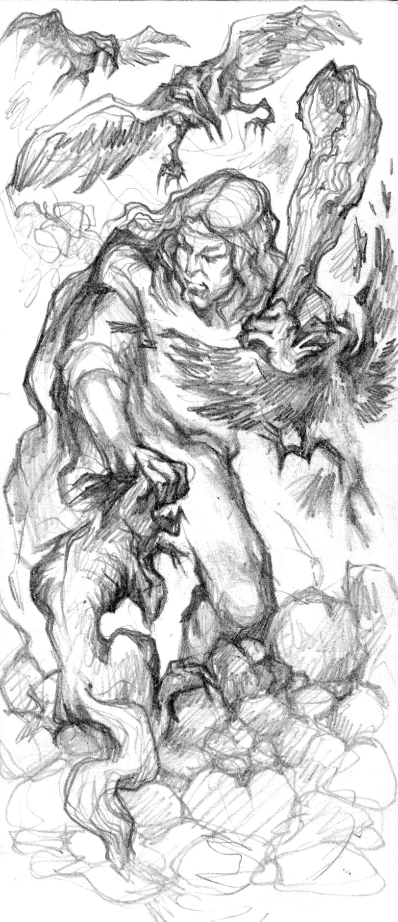 Над башнями замка кружили вороны и совы. Их гомон сливался с воем голодных волков, рыскавших у подножия стен обители колдуна. Гром заметил на стене замка человеческую фигуру – это был Брок. Голос колдуна грянул над лесом:
