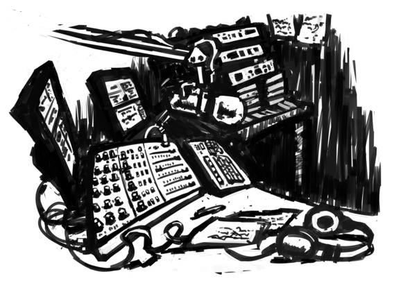 Само собой, оказалось, что на работе придется не только спать. Кроме раскладного дивана, из орудий производства у меня были: диджейский пульт, компьютер, телефоны, магнитофон с радиоприемником, видеофон и бронированные двери.