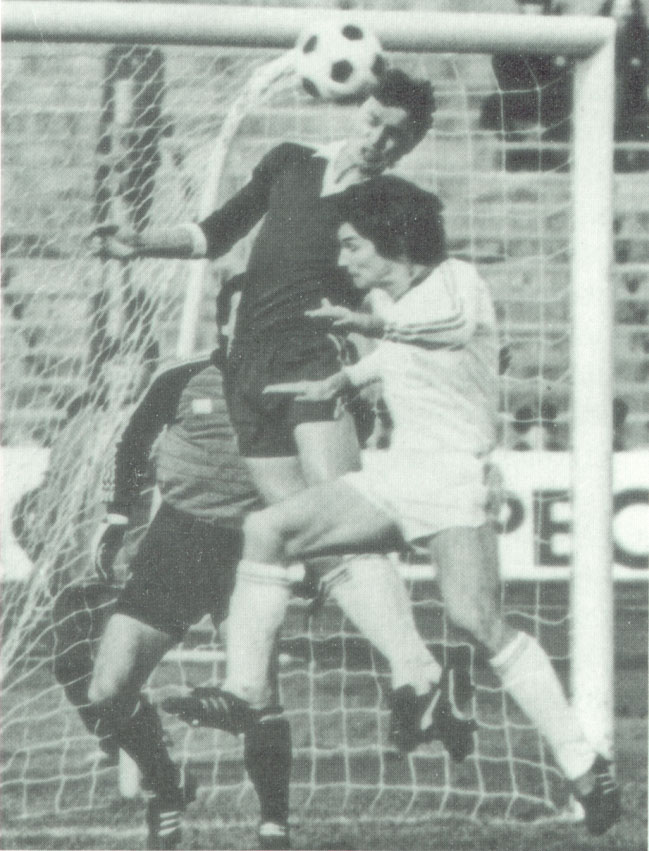Игрок команды Б принимал решение 734 мсек., а затем эффективно стартовал, преодолев расстояние 5,5 м. за 746 мсек. (таб. 5). В процессе бега, и особенно на последнем шаге, он, однако, не сумел подготовиться к прыжку с двух ног и перевести горизонтальную скорость тела в вертикальную, вследствие чего "пролетел" на 20 см. ниже мяча. Основными ошибками, не позволившими ему забить гол, явились длительное, по сравнению с соперником, время принятия решения, (у него ушло на это больше 321 мсек.), отсутствие коррекции в подготовительной фазе, и, как следствие, некачественная подготовка к выполнению эффективного прыжка на высокой скорости.