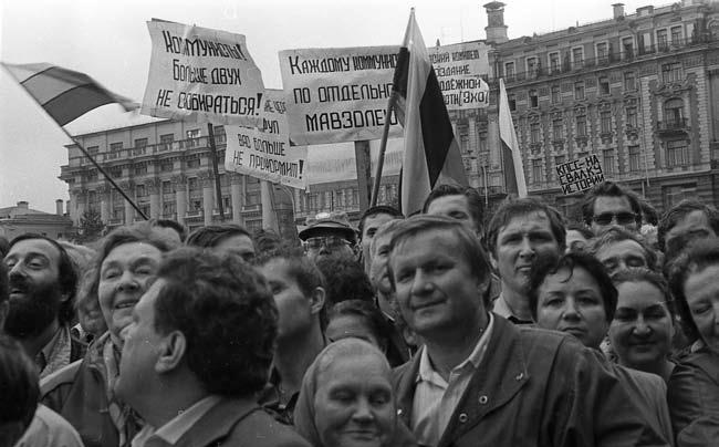 Митинг на площади 50-летия Октября (в 1990 году переименована в Манежную). КПСС – на свалку истории!