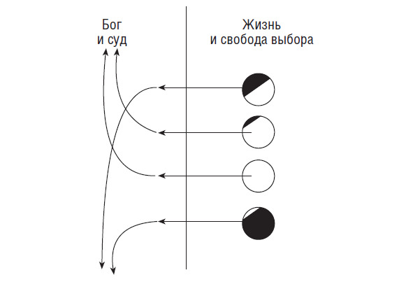 Рис. 3. Понятие греха: суд идёт после смерти. Если бы при жизни не было свободы выбора, то жизнь и смерть не различались бы