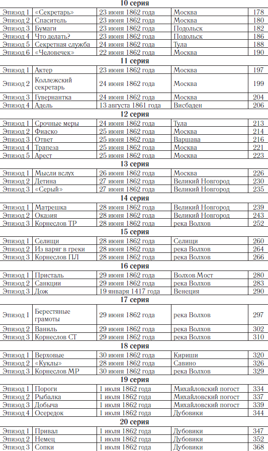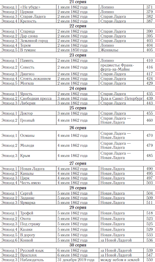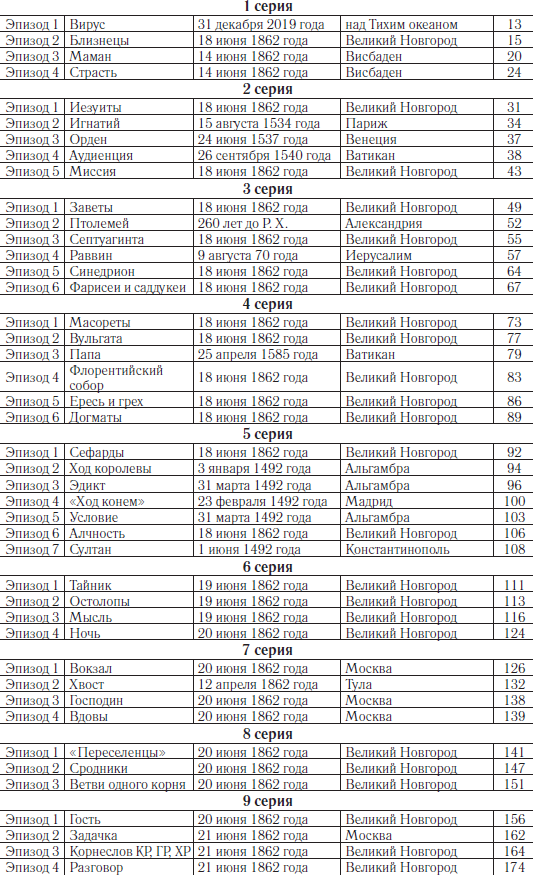Для сохранения интриги в описании истории киноромана использован киношный прием «отклонение в прошлое», и вам не просто будет разобраться, в какое время происходит действие. Поэтому есть еще одна подсказка – время и место действия легко отследить по монтажному листу – содержанию.
