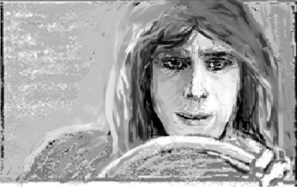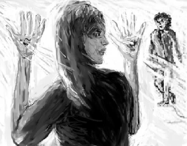 Внезапно, глаза пострадавшей открылись. Незнакомка протянула к нему руку и робко коснулась пальцем его лица.