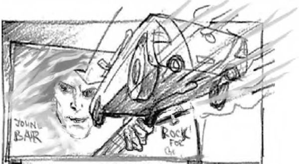 Кабриолет с двумя пассажирами, пытаясь увернуться от столкновения с фурой, сорвался с автострады. Он взлетел в воздух и, пробив рекламный щит с изображением самого рок-звезды, Джонни Бара, благополучно приземлился на другой дороге, расположенной ниже фривея. Джонни головой ударился о руль.